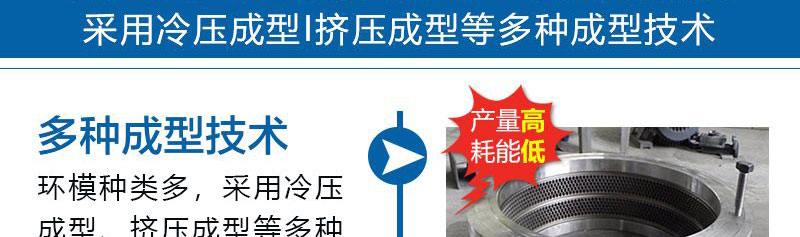 優(yōu)勢七:環(huán)模采用高標(biāo)號不銹高鎳鋼精工制造,獨特的壓縮比設(shè)計合理,使產(chǎn)品品質(zhì)更佳、環(huán)模使用壽命更長,降低了生產(chǎn)成本。