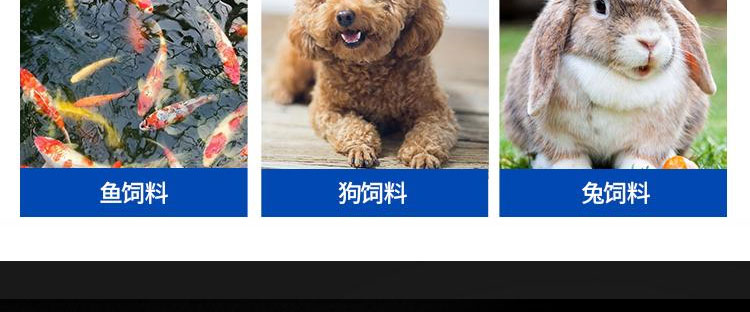 3、顆粒成分均勻,形狀整齊,顆粒粗細(xì)的孔徑可分為:Φ2、Φ2.5、Φ3、Φ3.5、Φ4、Φ5、Φ6、Φ7、Φ8等。用戶訂貨時(shí),可根據(jù)養(yǎng)殖動(dòng)物不同生長時(shí)期需要選擇。